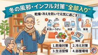 冬に増える風邪・インフルエンザを防ぐために、乾燥対策、冷え対策、部屋の環境づくり、食事、睡眠など中高年が実践しやすい予防法を分かりやすくまとめました。