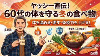 冬に積極的に食べたい生姜・ネギ・根菜・魚・柑橘類など、中高年の冷え対策・乾燥対策・免疫力アップに役立つ冬の食べ物を分かりやすくまとめました。