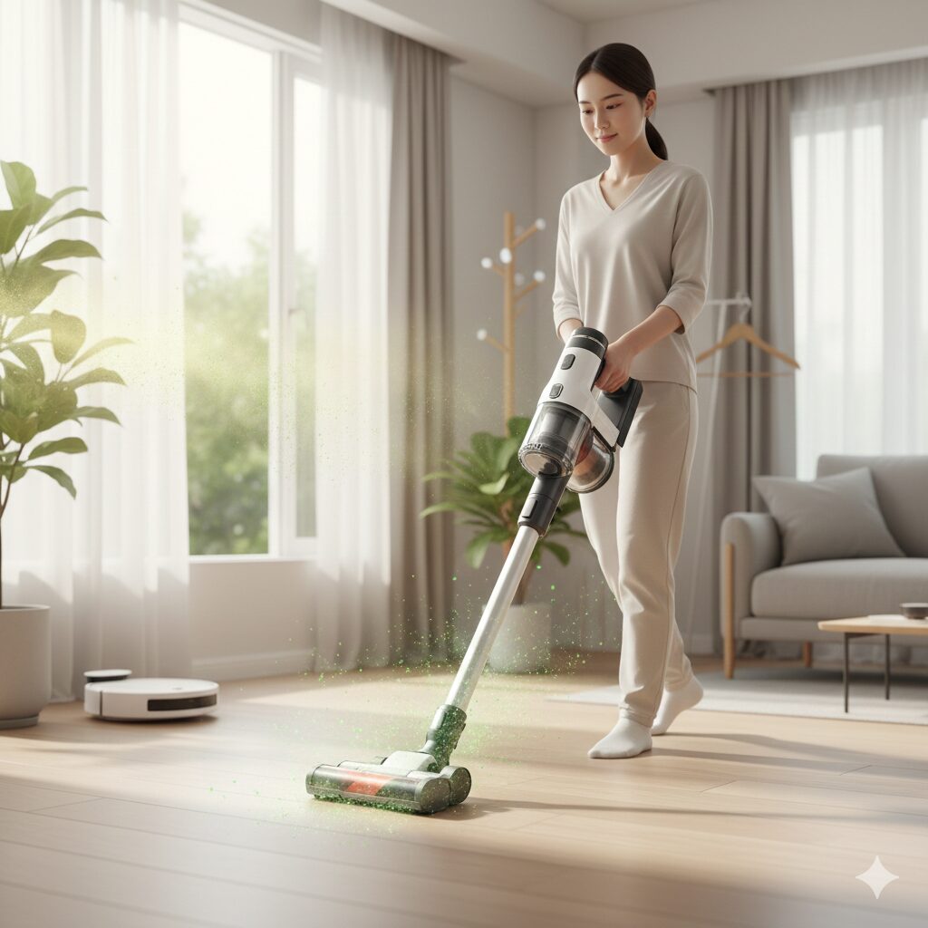 - チェックポイント: 「HEPAフィルター搭載」または「捕集効率99.9%以上」と記載のあるモデルを選びましょう。これにより、掃除機そのものが空気清浄機の役割を果たし、使うほど空気がきれいになります。