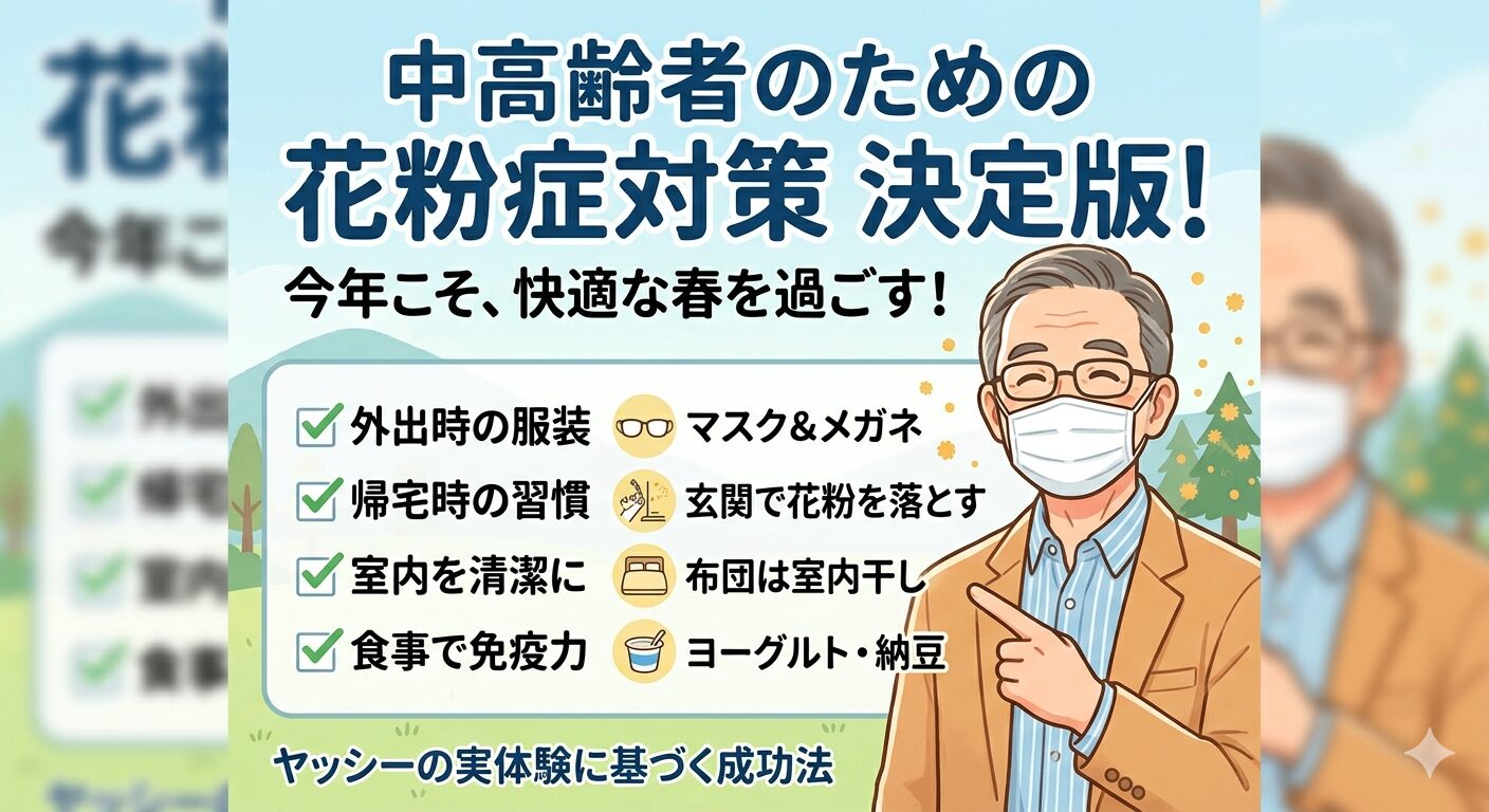 今回は、私ヤッシーが実際に経験した「痛い失敗」と、それを乗り越えて見つけた「快適に過ごすための成功法」を交えながら、中高齢者のための花粉症対策を詳しく解説します。