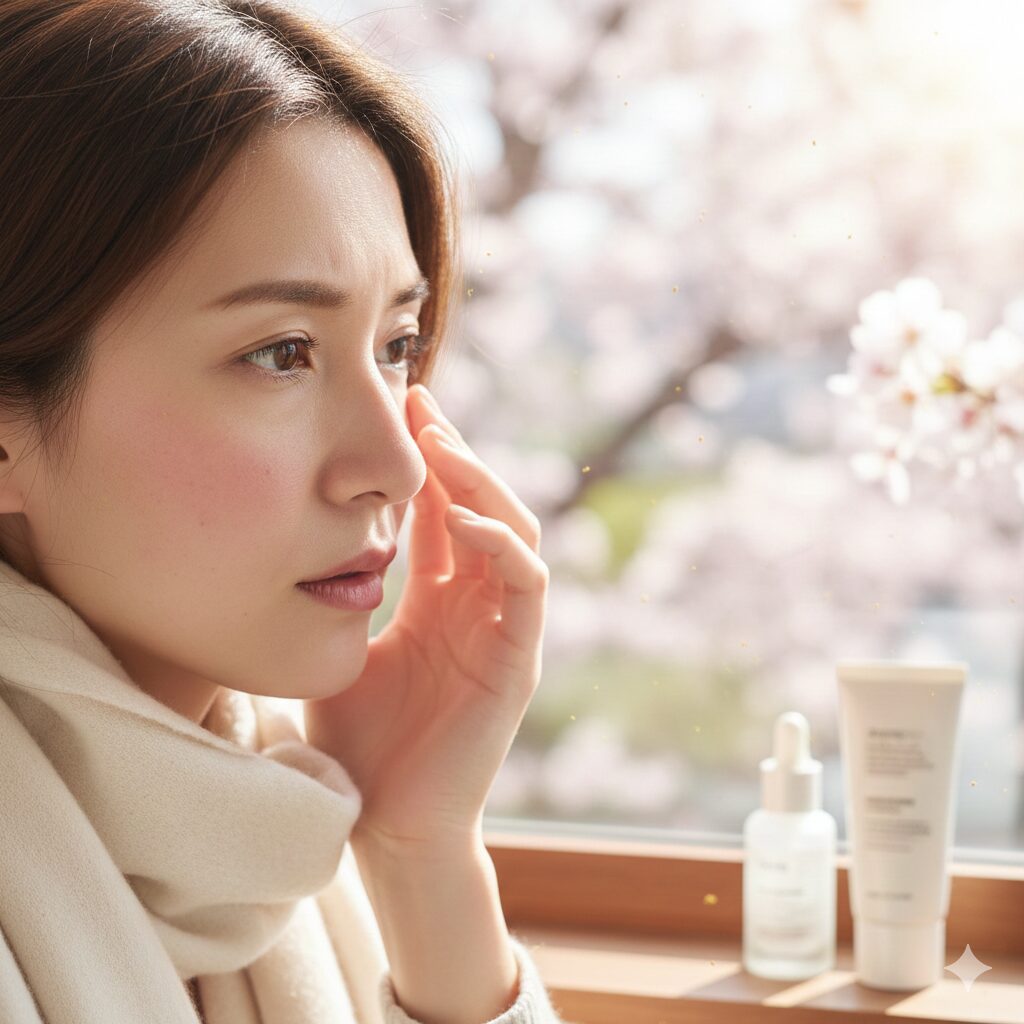 春の肌荒れは、「バリア機能の低下」と「花粉の付着」が最大の原因です。 以下の3ステップを意識して、辛い季節を乗り切りましょう!