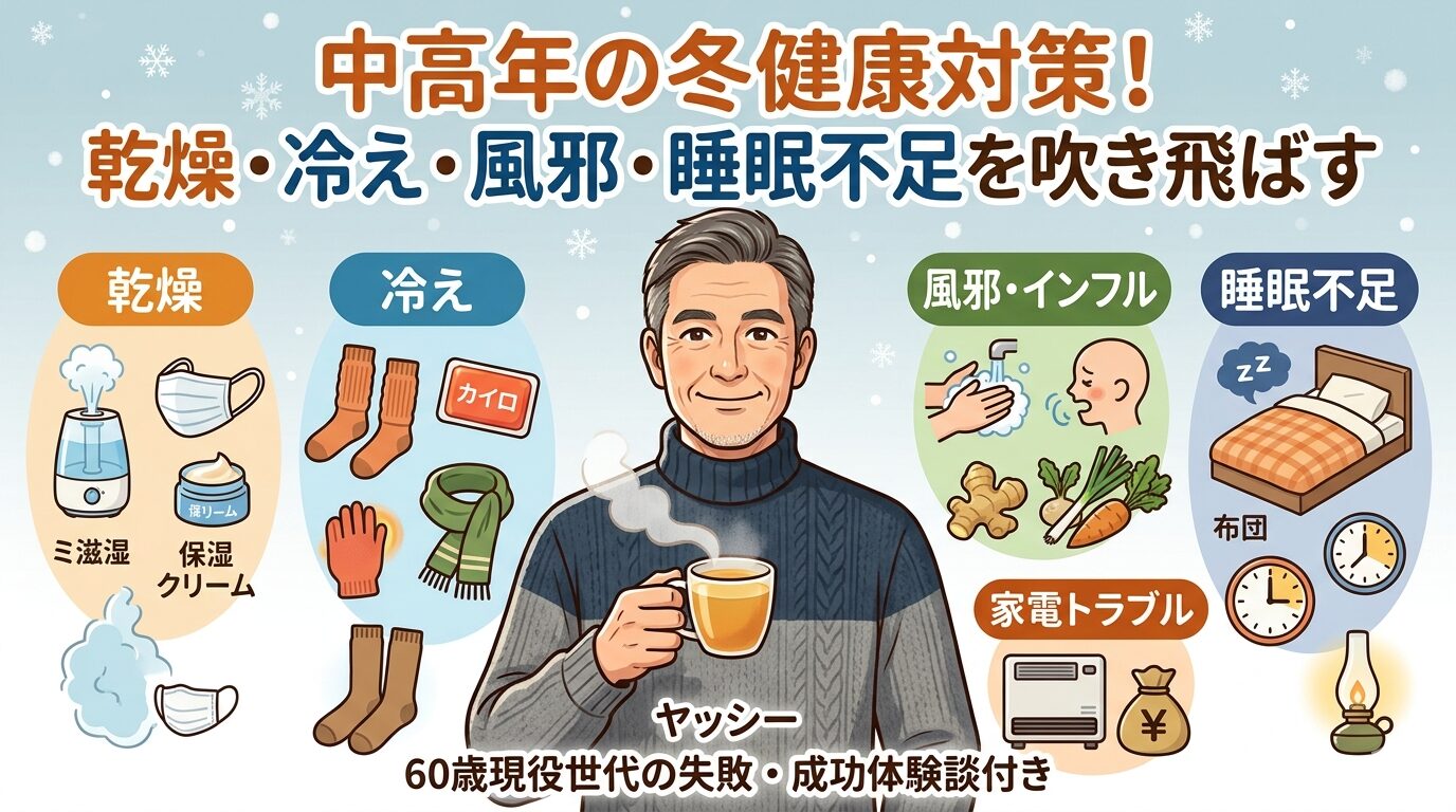 この記事では、私が実際に経験した失敗談や成功談を交えながら、中高年が冬を元気に乗り切るための「実用的な健康対策」を詳しく解説します。